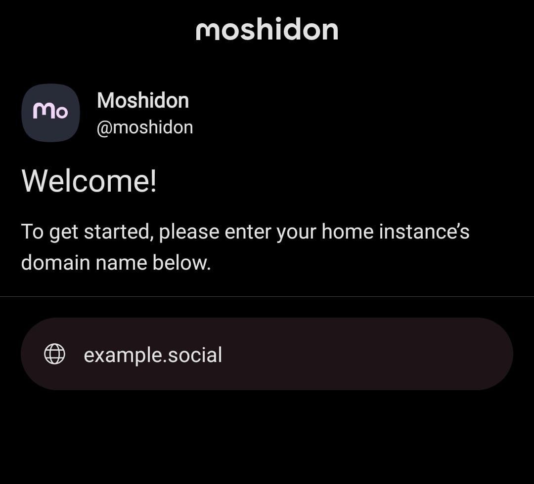 Once you download and install your app of choice, you will be prompted with something like below - "Choose your instance's domain name." This is the website you chose above! So if you chose ohai.social, put ohai.social here!