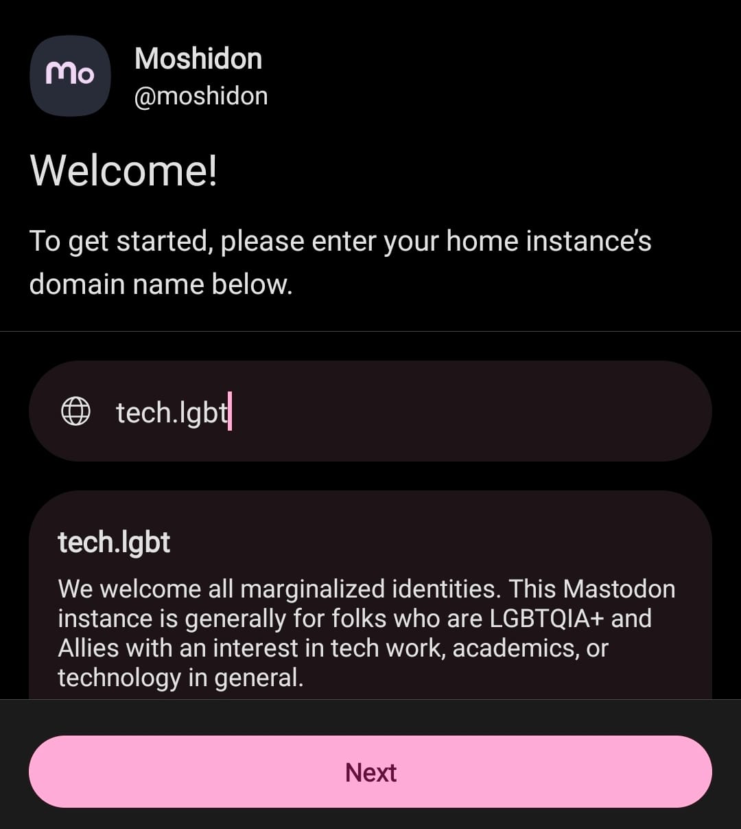 I was immediately very confused. You see, unlike Twitter, which only has twitter.com as its website, Mastodon has many, many websites. I had initially signed up for one of these websites - called tech.lgbt - but upon downloading a mastodon app, I was prompted to sign up for a different Mastodon website called mastodon.social. Because of this, I ended up making two different Mastodon accounts, and didn't know why I had to sign up twice (In fact, I did not need to sign up twice - I just had to wait for tech.lgbt's moderators to approve my application).